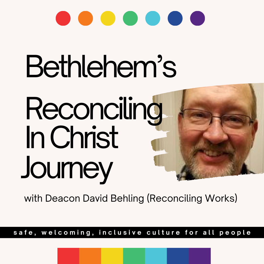 Along with the RIC Team’s continued one-on-one conversations, we are excited to begin to share opportunities for group conversations, learning and questions. We invite you to gather with us for Bethlehem’s Reconciling In Christ Journey on Sunday, Oct 5, 6:00 pm (MPLS, following the Evensong worship service) for an informal, educational session with the RIC Team and Deacon David Behling, program coordinator at ReconcilingWorks.